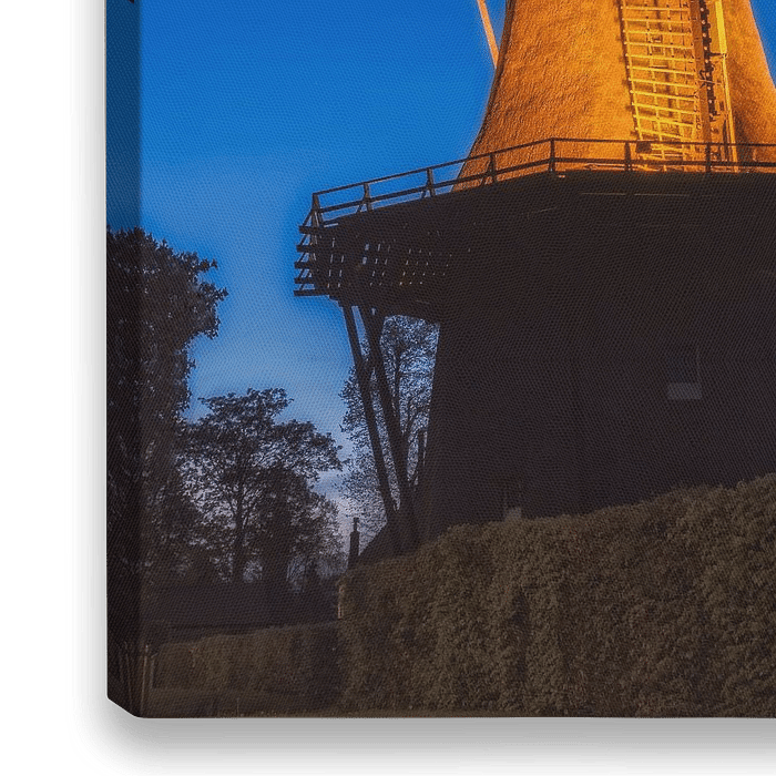 Als ich von IJmuiden nach Spaarndam fuhr, sah ich diese schöne Mühle in Santpoort-Noord. Dann hörte ich dieses Bild in der blauen Stunde, um zu schießen.