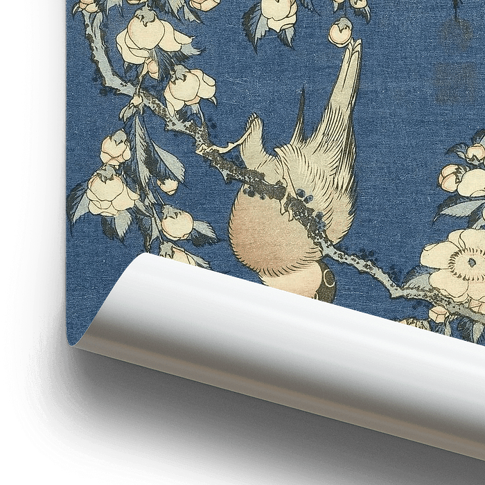 Der Kirschbaum ist ein bekanntes Symbol für Japan, seine Blüten sind die Nationalblume. Sie sind hellrosa und weiß und wachsen direkt aus dem Zweig, wie hier von Hokusai gemalt. Am schönsten sind diese Blüten im Frühjahr zu sehen, vor allem auf der Insel Hokkaido.