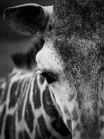 Bestelle das Foto Giraffe in Schwarz und Weiß von Natuur in Focus als Reproduktion auf Leinwand, Alu-Dibond, als Poster, Fototapete oder Acrylglasbild.