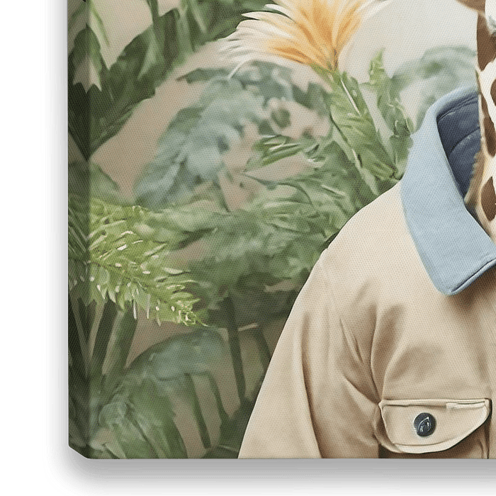 Eine lustige Serie von Bildern von wilden Tieren in einem Dschungel-Stil mit Ai gemacht und mit Photoshop bearbeitet. Alleine an der Wand oder als Serie, schön für das Kinderzimmer, zum Beispiel.