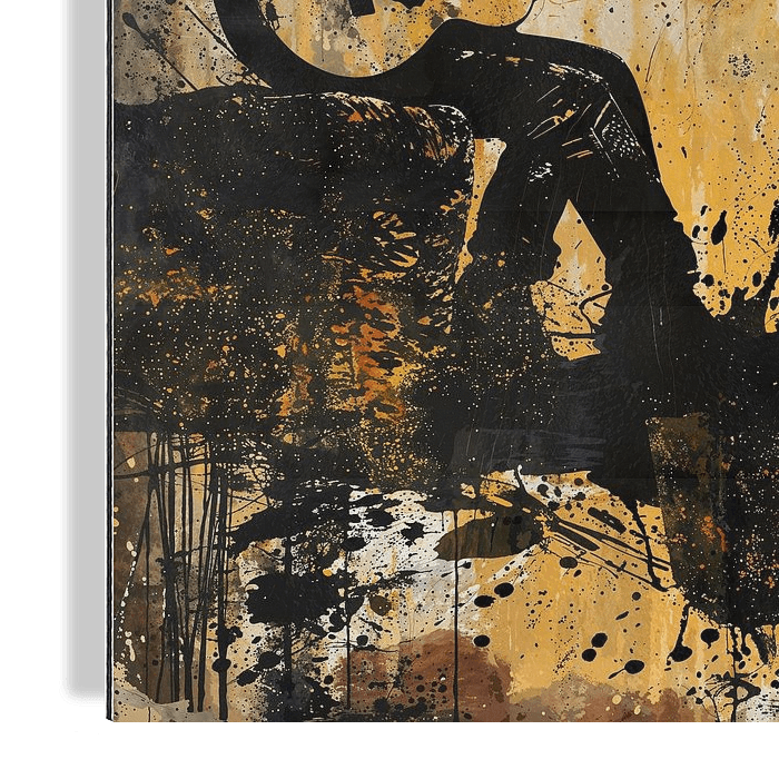 Dieses Kunstwerk fängt die Essenz von Musik und Emotionen in der kraftvollen Silhouette eines Gitarristen ein, die vor einem dynamischen Hintergrund aus abstrakten Farbtönen steht. Der Kontrast zwischen dem schwarzen Schatten des Musikers und den leuchtenden Farben im Hintergrund erzeugt einen faszinierenden visuellen Effekt, der sowohl…