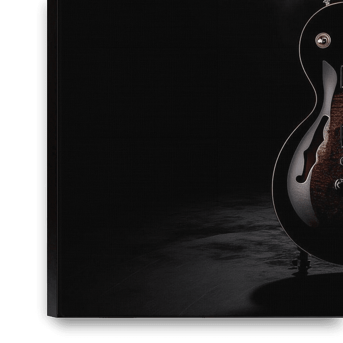 Einzigartige braun-schwarze Gitarrenmalerei mit atemberaubendem Stil. Mit schönen Farbtönen und einem einzigartigen Design ist dies ein stilvoller Fotodruck, der in jedem Raum gut aussieht.