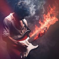 Intensives Gitarrenspiel, bis deine Musik die Gitarre in Brand setzt.