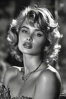 Frauen im Glamour-Stil der 1950er und 1960er Jahre in der Fotografie und Filmindustrie. Künstliche Intelligenz von nicht existierenden Personen.