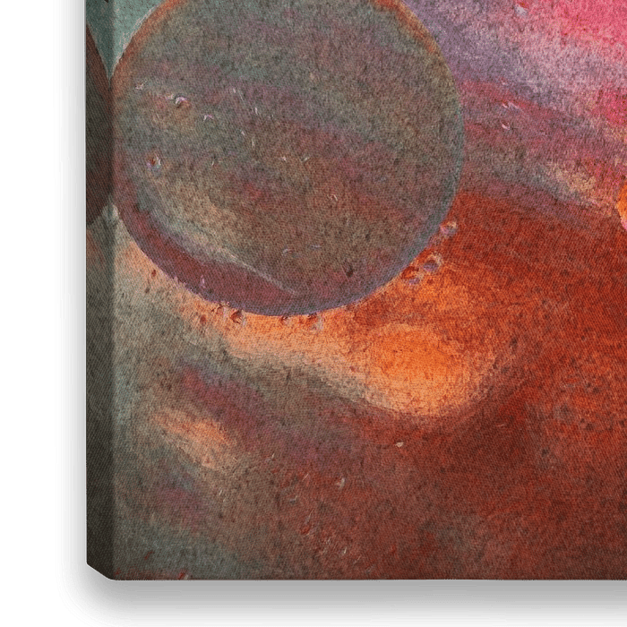 Ein farbenfrohes Bild von Sphären in einer räumlichen Umgebung mit einer geheimnisvollen, außerirdischen Wirkung. Die Farben reichen von Violett, Flieder bis hin zu Grün und Rot.