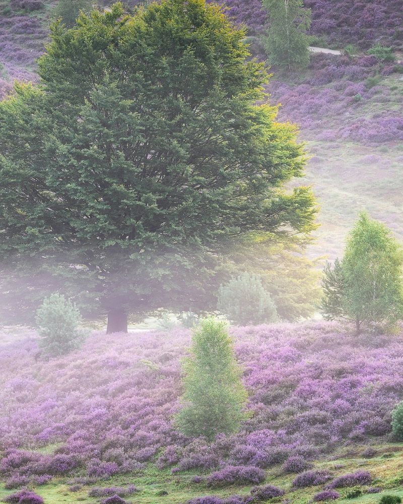 Im August ist Hochsommer, wenn das Heidekraut auf dem Veluwezoom blüht und seine violetten Farbtöne zeigt. Das Herikhuizerveld, vielen auch als "die Posbank" bekannt, ist dann sehr beliebt. Es ist wunderschön dort am frühen Morgen, wenn sich der Morgennebel langsam auflöst und die Sonne die Landschaft färbt.