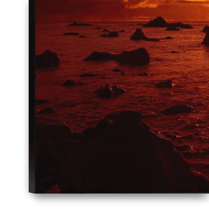 Bestelle das Foto Glühendes Meer von Fabian Roessler als Reproduktion auf Leinwand, Alu-Dibond, als Poster, Fototapete oder Acrylglasbild.