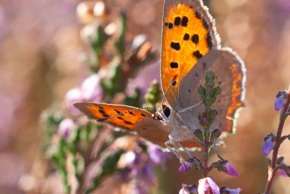 Glühwürmchen im Heidekraut, das die Sonne und die Fülle an Nektar genießt.