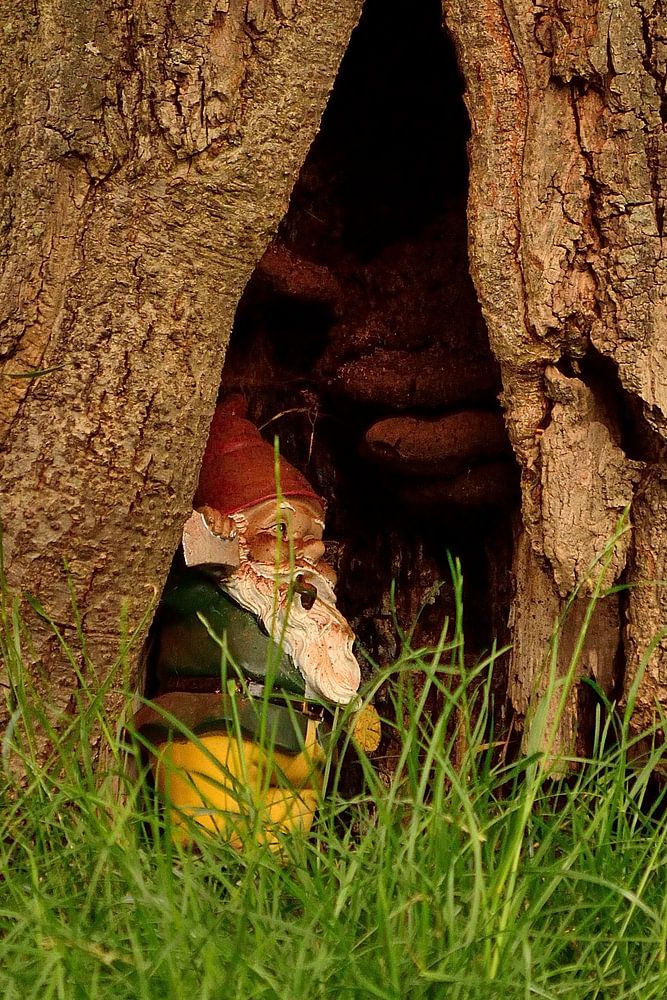 Du gehst im Wald spazieren und stehst plötzlich vor einem Gnom, der in seinem Baumhaus chillt.