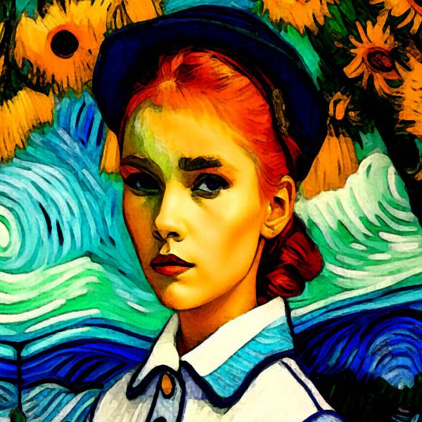 Bestelle diese Malerei Gogh-Mädchen von Knoetske als Reproduktion auf Leinwand, Alu-Dibond, als Poster, Fototapete oder Acrylglasbild.