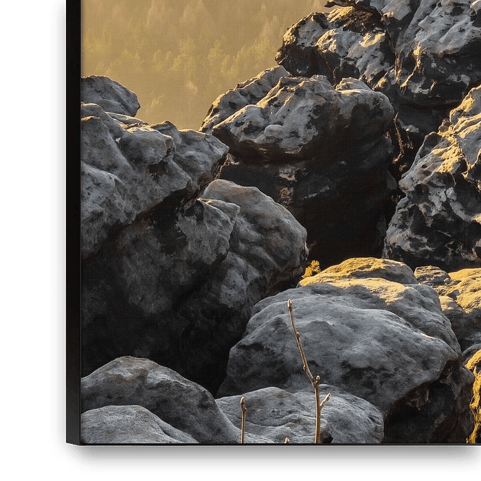 Bestelle das Foto Gohrisch, Sächsische Schweiz - Pfaffenstein und Felsplateau von Pixelwerk als Reproduktion auf Leinwand, Alu-Dibond, als Poster, Fototapete oder Acrylglasbild.