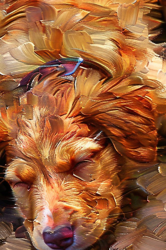 Dieses schöne Gemälde fängt die heitere Ruhe eines schlafenden Welpen in warmen Herbsttönen ein. Die weichen Pinselstriche und die satten Farben schaffen ein Gefühl von Frieden und Wärme und machen es zur perfekten Ergänzung für jeden Raum. Es ist ein zeitloses Kunstwerk, das über Jahre hinweg Freude und Trost spenden wird.