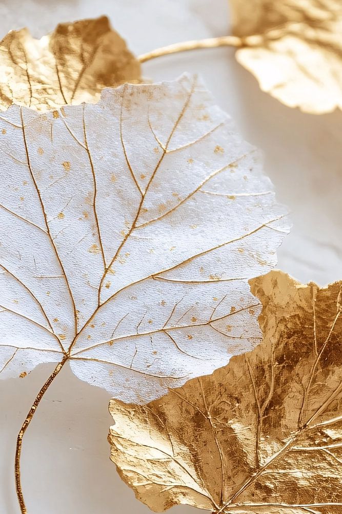 Dieses Bild zeigt zarte, detaillierte goldene Blätter auf einem hellen, neutralen Hintergrund. Das Design strahlt Raffinesse und Minimalismus aus, wobei der Schwerpunkt auf natürlichen Elementen und subtilem Luxus liegt. Die Kombination der goldenen Akzente mit den ruhigen Grautönen schafft ein Gefühl der Gelassenheit und des Stils, das perfekt zu einem modernen Interieur passt. Dieses Design ist ideal für alle, die einen subtilen und doch luxuriösen Look in ihrem Wohn- oder Arbeitsbereich lieben. Die goldenen Blätter, die anmutig dargestellt sind, verleihen eine zeitlose Eleganz, die sowohl modern als auch klassisch wirkt. Perfekt für ein Büro oder ein Wohnzimmer, verleiht dieses Stück jedem Raum ein weiches, natürliches Gefühl.