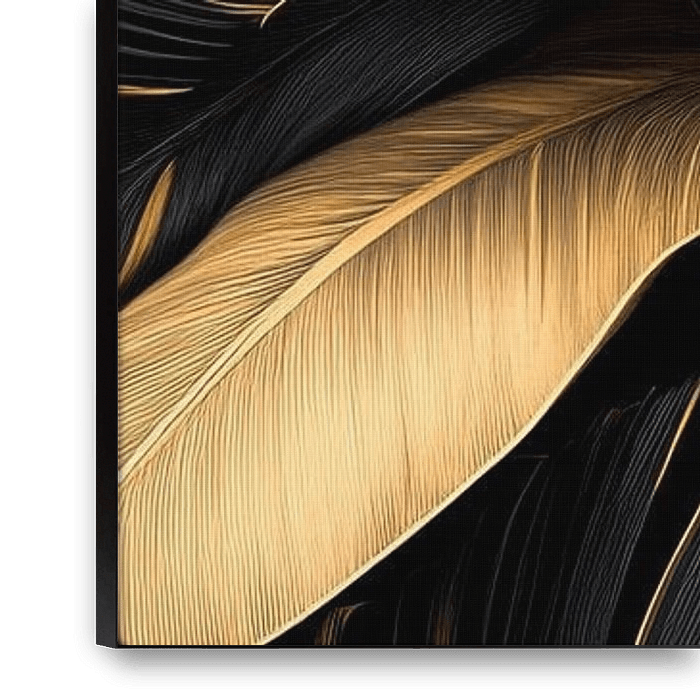 Ein faszinierendes Zusammenspiel von Dunkelheit und Licht entfaltet sich in geschmeidigen, gebogenen Blättern. Die tiefen, satten Schwarztöne kontrastieren mit schimmerndem Gold, das den organic shapes Glanz verleiht. Diese Komposition erweckt den Eindruck von Eleganz und Mystik, während die Formen harmonisch ineinander übergehen und…