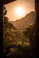 Bestelle das Foto Goldene Dschungelsonne, eingefangen durch das Fenster von Laurien De Grande als Reproduktion auf Leinwand, Alu-Dibond, als Poster, Fototapete oder Acrylglasbild.