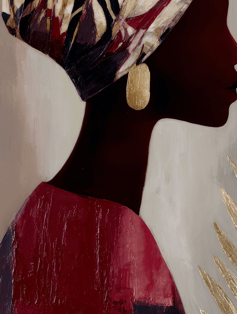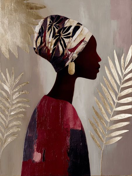 Das Profil der Frau strahlt Stärke, Würde und zeitlose Schönheit aus. Die Blattgoldmotive um sie herum betonen eine Atmosphäre von Natur, Spiritualität und Sanftheit. Dieses Kunstwerk passt perfekt in Innenräume mit einer modernen, raffinierten oder warmen Farbpalette: von Minimalismus bis Boho-Luxus.