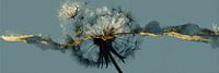 Dieses Panoramabild kombiniert die zerbrechliche Schönheit einer Pusteblume mit einer abstrakten goldenen Linie, die das Bild durchschneidet. Der graugrüne Hintergrund steht in schönem Kontrast zu den Goldtönen und der schwarzen Silhouette der Blume. Die Komposition hat etwas Geheimnisvolles an sich, und die dynamischen Pinselstriche…