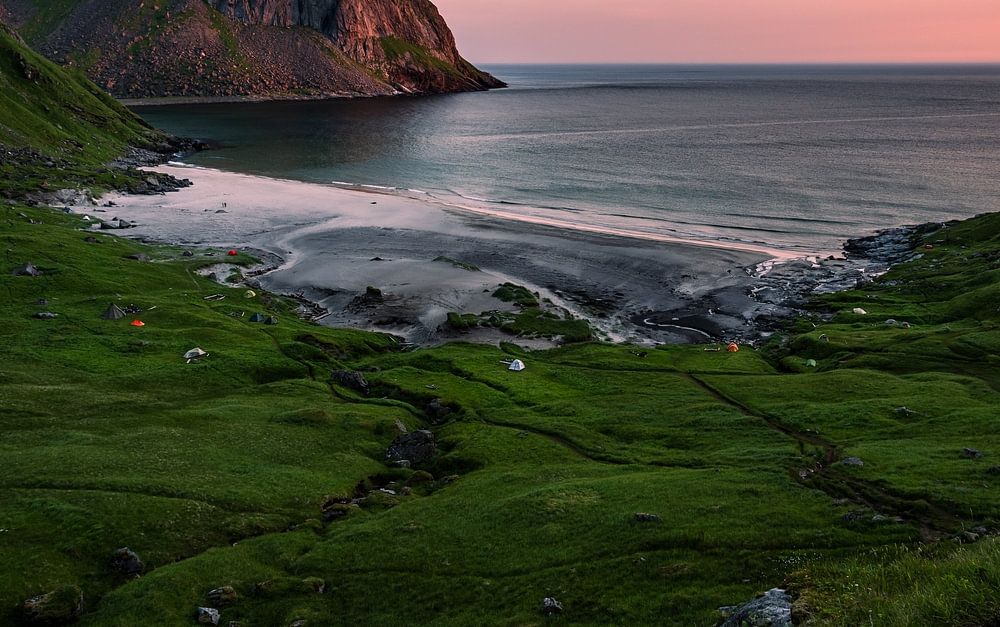 Goldene Stunde an der Nordsee in Norwegen, Kvalvika Beach.