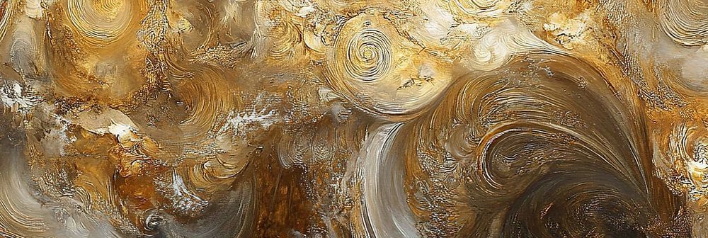 Goldene Wirbel - Dieses abstrakte Gemälde zeigt eine dynamische Komposition aus wellenförmigen Formen und Wirbeln in satten Gold- und Brauntönen, die von Texturen akzentuiert werden, die das Licht einzufangen und zu reflektieren scheinen.