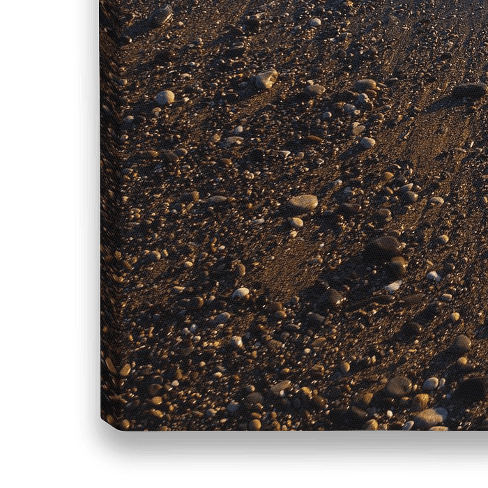 Bestelle dieses abstrakte Wandbild Goldener Sand und Steine, nass von der ablaufenden Welle, Meeresküste von Michael Semenov als Reproduktion auf Leinwand, Alu-Dibond, als Poster, Fototapete oder Acrylglasbild.