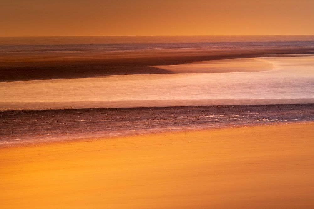 Ein goldener Sonnenuntergang an der Opalküste im Vorfrühling. Die Strände sind noch leer, nur die Sonne, das Meer und ich. Dank der verwendeten ICM-Technik (Bewegung Intentional Camera Movement, übersetzt ins Niederländische bedeutet das, dass die Kamera während der Aufnahme absichtlich (Intentional) bewegt wurde) ist der goldene Sonnenuntergang wunderschön weich und doch dicht eingefangen, fast verträumt und abstrakt zugleich.