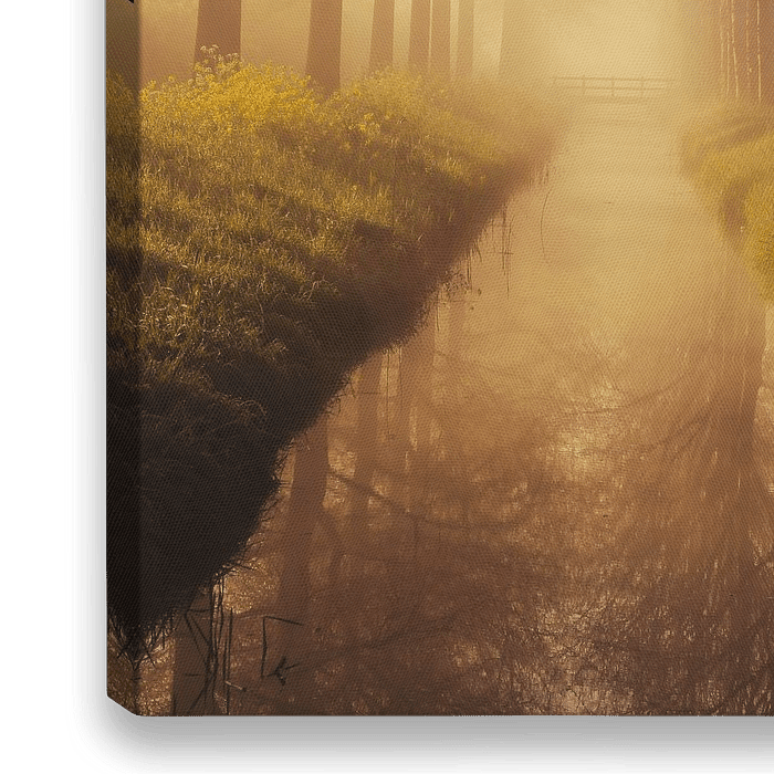 Ein Foto einer nebligen Szene im Frühling mit wunderbarem goldenen Licht.