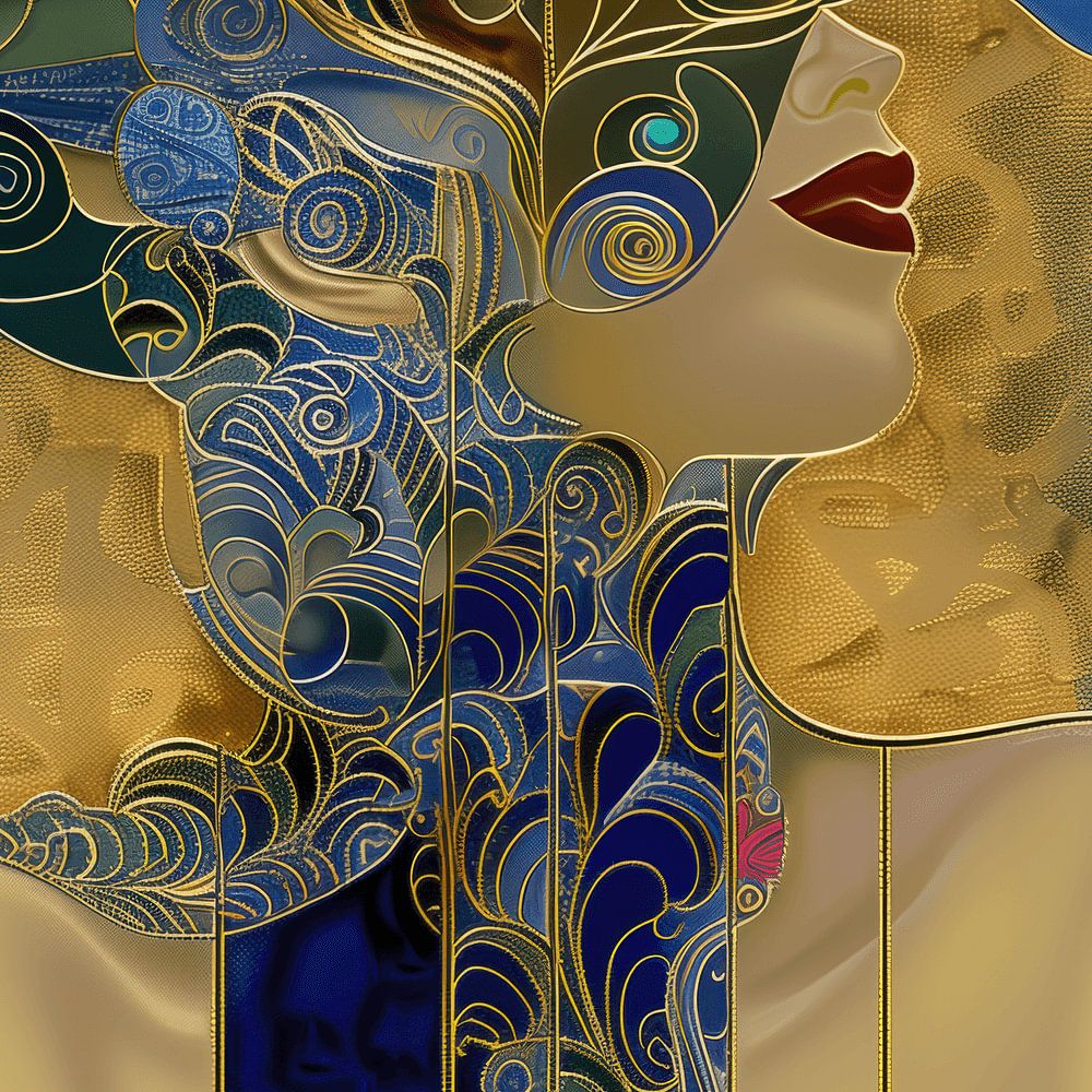 Stap binnen in deze betoverende wereld van kleurrijke pracht en laat je meevoeren door de magische combinatie van goud en kunst in deze unieke portretten. Ze zijn een viering van zowel het verleden als de toekomst, waarbij de eeuwenoude schoonheid van Oosterse en Egyptische kunst op schitterende wijze wordt herboren in het digitale tijdperk.