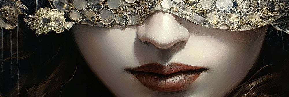 Details: Maske, Frau, Gold, Schwarz, Porträt, Geheimnis, Emotionen, Augen, Verborgenheit, Enthüllung, Grandeur Chic