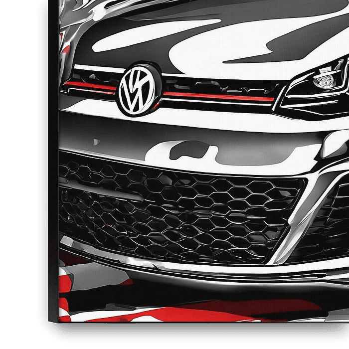 Bestelle dieses abstrakte Wandbild Golf GTI Spritzplastik von kevin gorter als Reproduktion auf Leinwand, Alu-Dibond, als Poster, Fototapete oder Acrylglasbild.