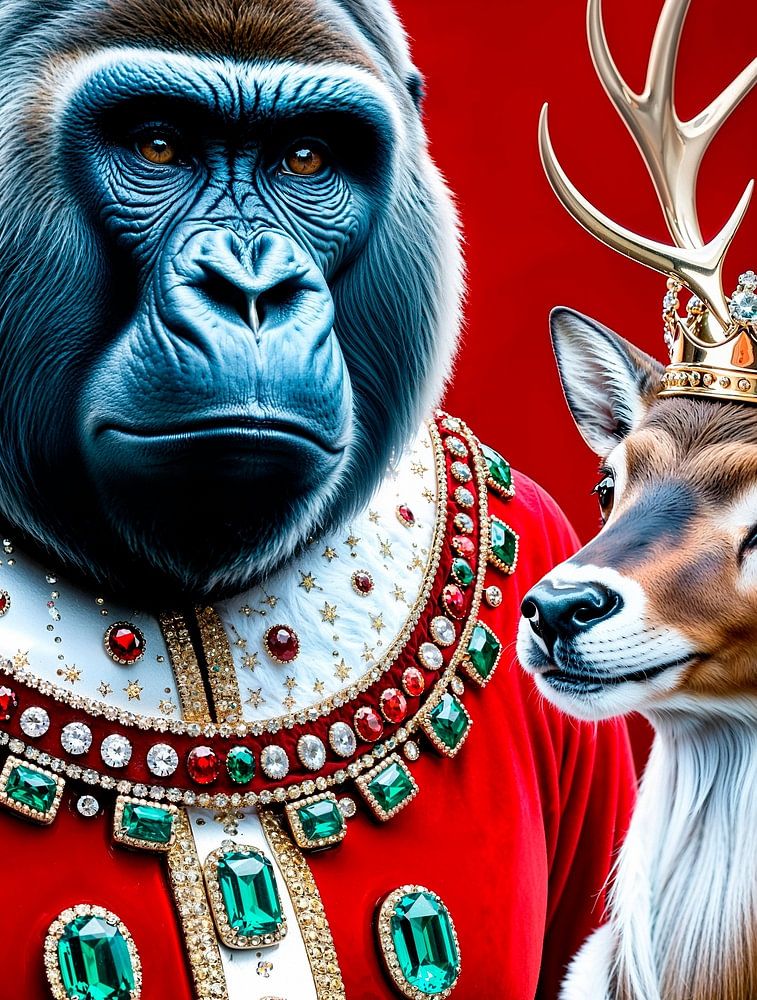 Gorilla-König als Weihnachtsmann mit königlichen Rentier