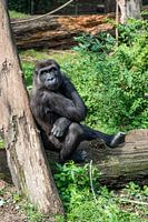 Bestelle das Foto Gorilla betrachtet eine Situation von Michel Groen als Kunstdruck auf Leinwand, Alu-Dibond, als Poster, Fototapete oder Acrylglasbild.
