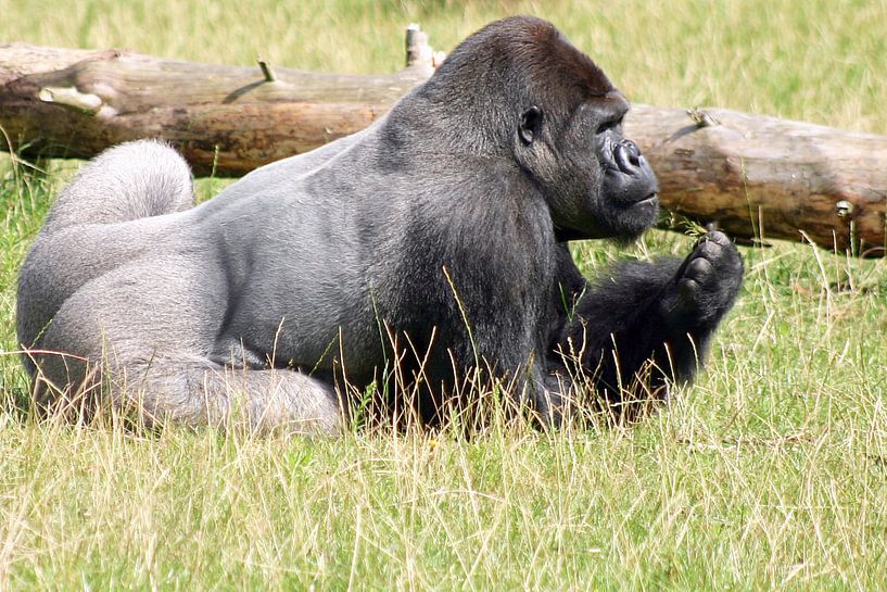 Lekker relaxed wacht deze Gorilla op zijn ontbijt.