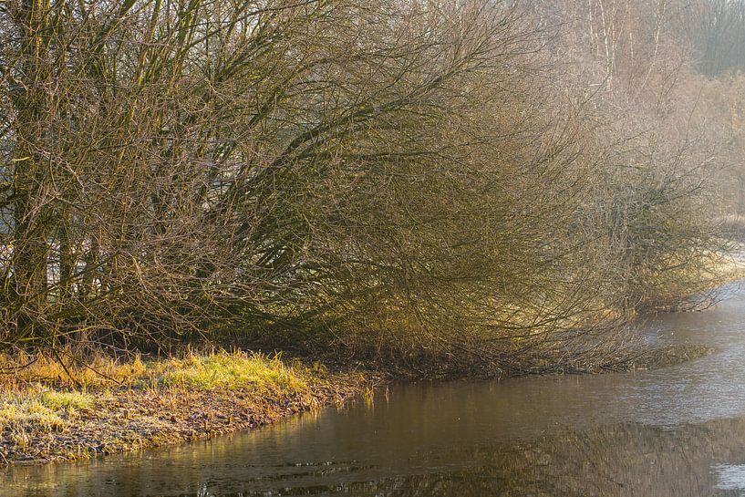 Ein frostiger Morgen, an dem der Nebel Frost auf den Weiden entlang des Grabens hinterlassen hat. Ein Feuerwerk von Wintertönen. So subtil wie die Bewegungen der Zweige.