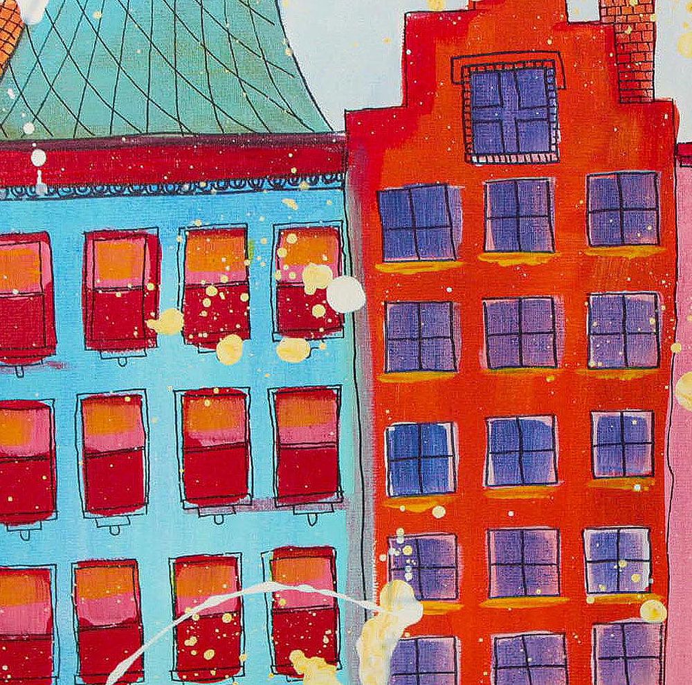 Diese fröhlichen Grachtenhäuser mögen aus Amsterdam, Delft oder Leiden stammen. Hängen Sie diese fröhlichen Häuser für einen stimmungsvollen Eindruck an die Wand, modern, aber auch für das klassische Wohnzimmer geeignet.