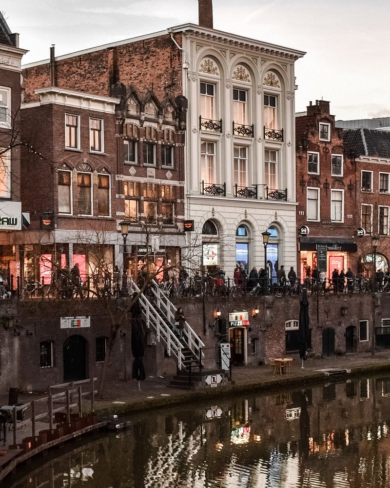 Reflectie van de grachtenpanden in Utrecht tijdens het gouden uurtje