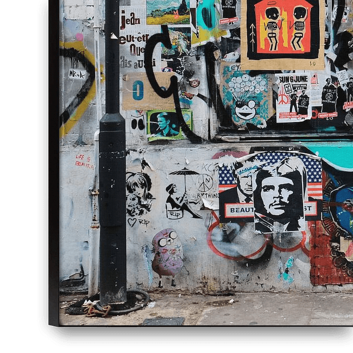 Bestelle dieses abstrakte Wandbild Graffiti-Wand, Shoreditch, London von Roger VDB als Reproduktion auf Leinwand, Alu-Dibond, als Poster, Fototapete oder Acrylglasbild.