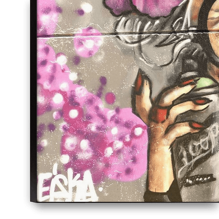 Bestelle dieses Popart-Wandbild Graffiti im feurigen Süden Spaniens. Funky Abuela von littletreasureshouse als Reproduktion auf Leinwand, Alu-Dibond, als Poster, Fototapete oder Acrylglasbild.