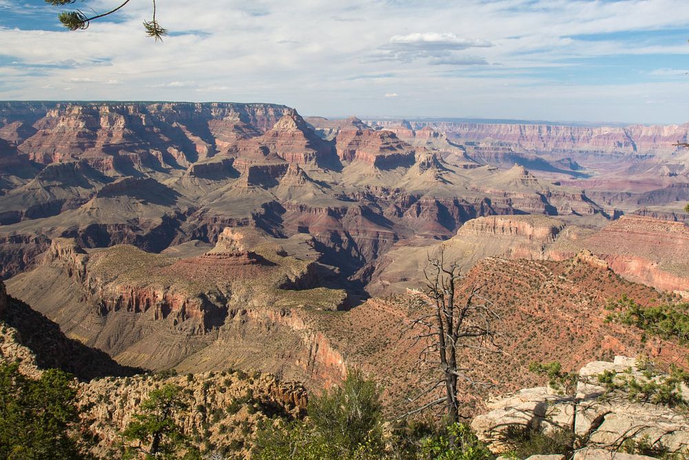 Mooi zicht op de grand canyon, omlijst door boomtakken.