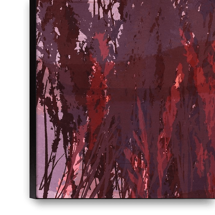 Bestelle dieses abstrakte Wandbild Gras in Lila, Korallenrosa, Violett. Moderne botanische Kunst. von Dina Dankers als Reproduktion auf Leinwand, Alu-Dibond, als Poster, Fototapete oder Acrylglasbild.