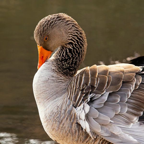 Die Graugans kommt häufig an Gewässern vor und ist dennoch ein attracktives Fotoobjekt. Besonders beim Baden und Putzen plustert sie sich auf oder schlägt mit den Flügeln. Diese Momente halte ich gern mit der Kamera fest.