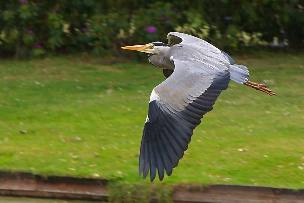 Dieser Graureiher hatte gerade seinen Flug vom Ufer aus begonnen, und ich hatte Glück, ihn einfangen zu können.