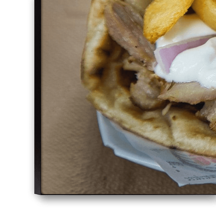 Griechisches Gyros-Pita mit Hackfleisch, Pommes frites, Tomaten und Tzatziki-Sauce