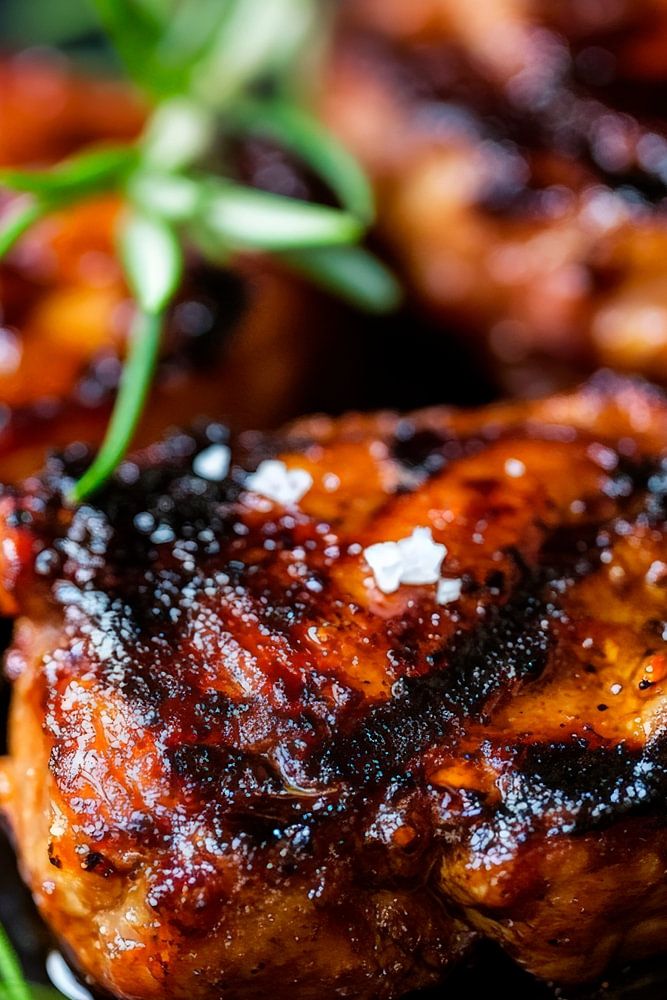 Ein verlockendes Arrangement von saftig gegrilltem Fleisch, gekrönt mit frischen Rosmarinzweigen und einer Prise Salz, zieht die Blicke an. Die glänzende Textur und die kraftvollen Farben verbreiten eine einladende Atmosphäre. Ideal für eine Küche oder ein Esszimmer, wo Kulinarik und Geselligkeit im Mittelpunkt stehen. Ein Genuss für alle Sinne!