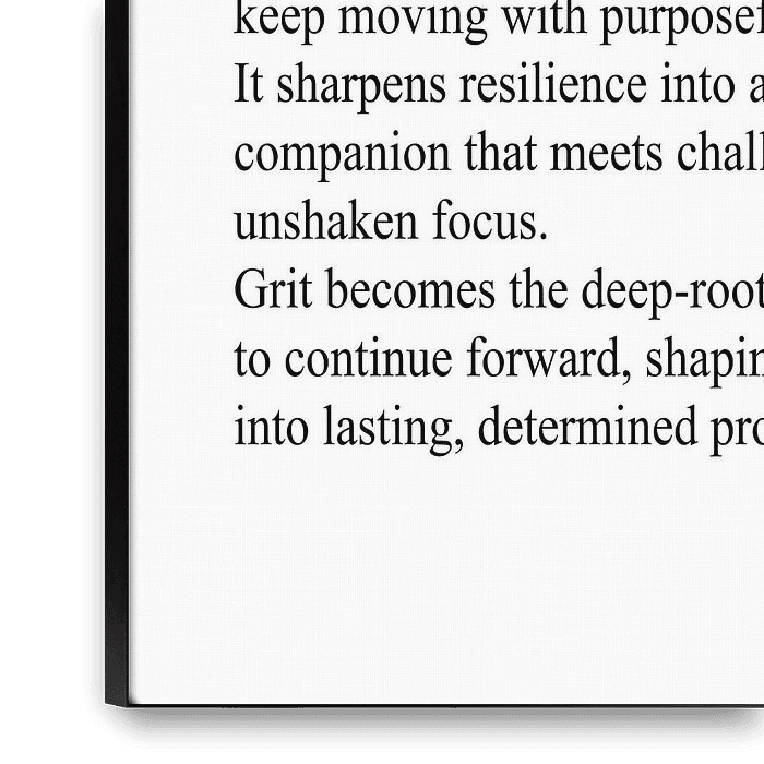 Der Begriff „Grit“ beschreibt Ausdauer, Zielstrebigkeit und standhaften Fokus. Dieses minimalistische Typografie-Poster interpretiert das Wort auf eine klare und zeitlose Weise.