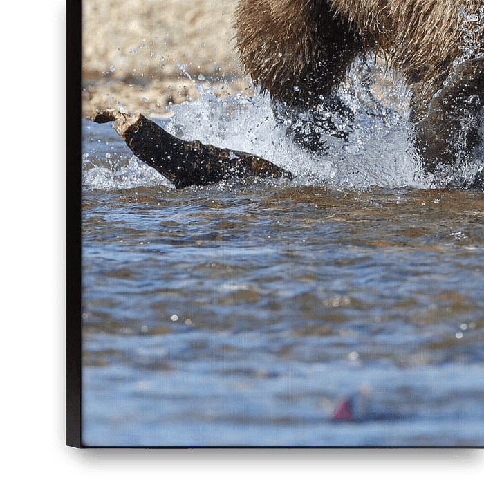 Grizzly beer die door de rivier loopt in het national Katmai Park in Alaska op zoek naar zalmen