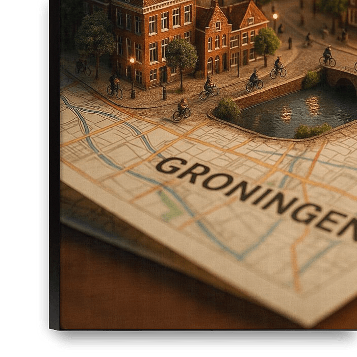 Bestelle dieses Landschafts-Wandbild Groningen Martinitoren 3D Karte - Stadt der Talente Wandkunst von Travel Shop als Reproduktion auf Leinwand, Alu-Dibond, als Poster, Fototapete oder Acrylglasbild.