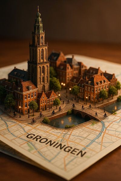 Bestelle dieses Landschafts-Wandbild Groningen Martinitoren 3D Karte - Stadt der Talente Wandkunst von Travel Shop als Reproduktion auf Leinwand, Alu-Dibond, als Poster, Fototapete oder Acrylglasbild.