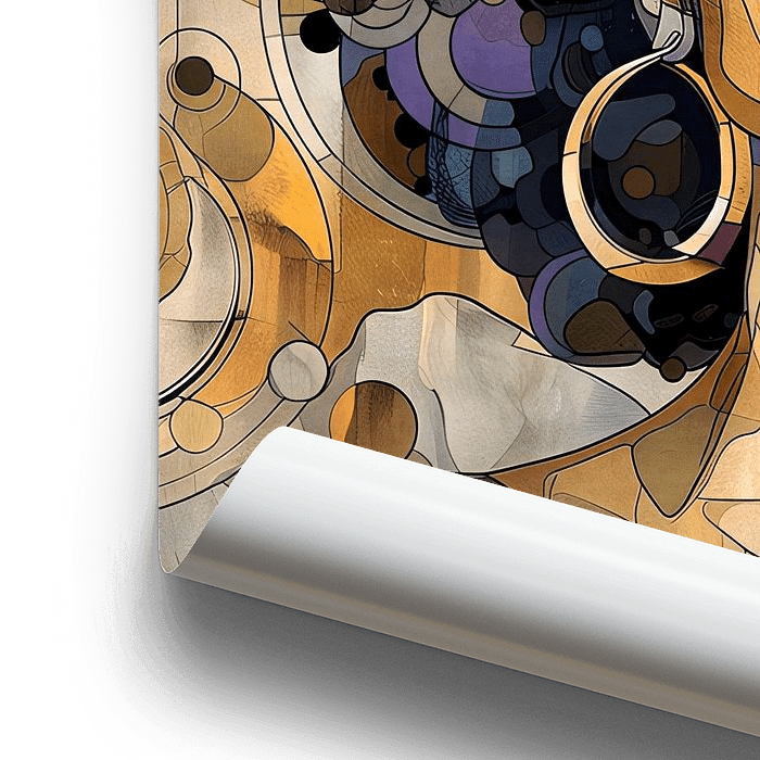 Mischtechnik mit hauptsächlich Gold-, Lila- und Beigetönen.