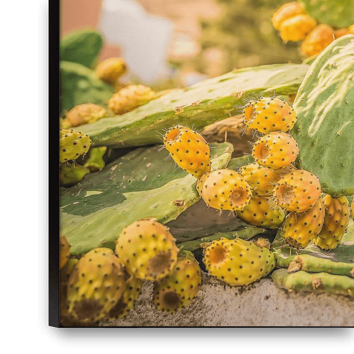 Auf den harten Felsen in Griechenland finden Sie diese erstaunlichen Kakteen mit wunderschönen Früchten, die wie Blumen zur Geltung kommen.