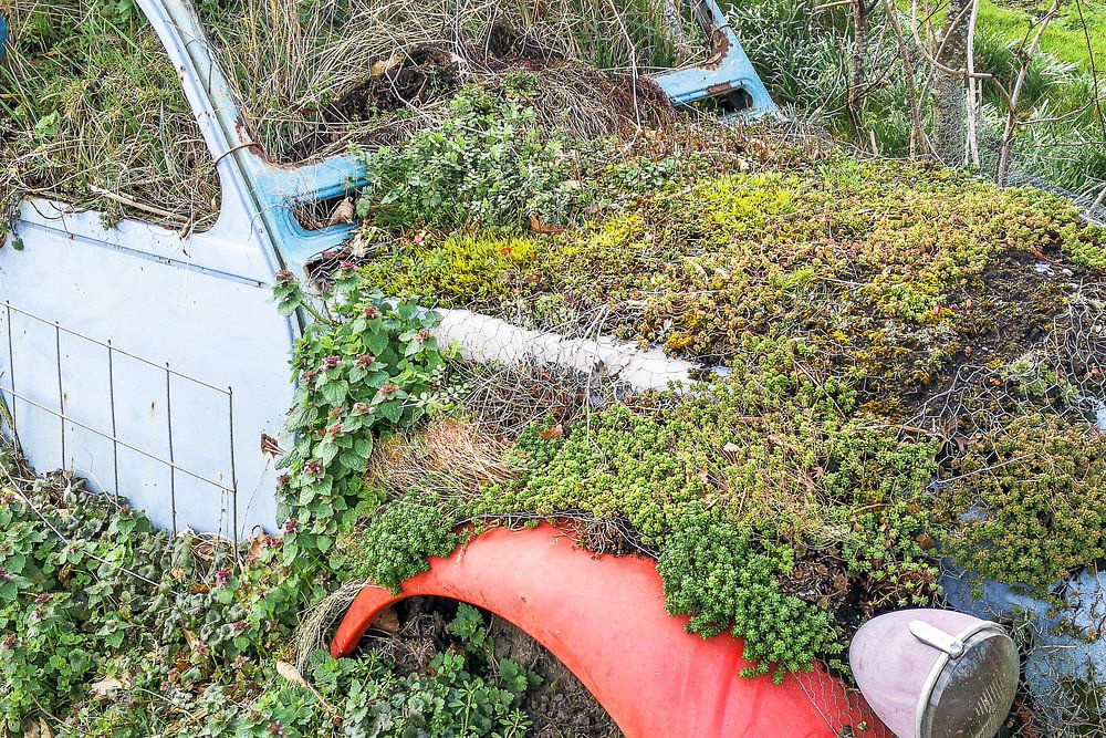 "Ente" Zitrone 2 CV mit Pflanzen bewachsen